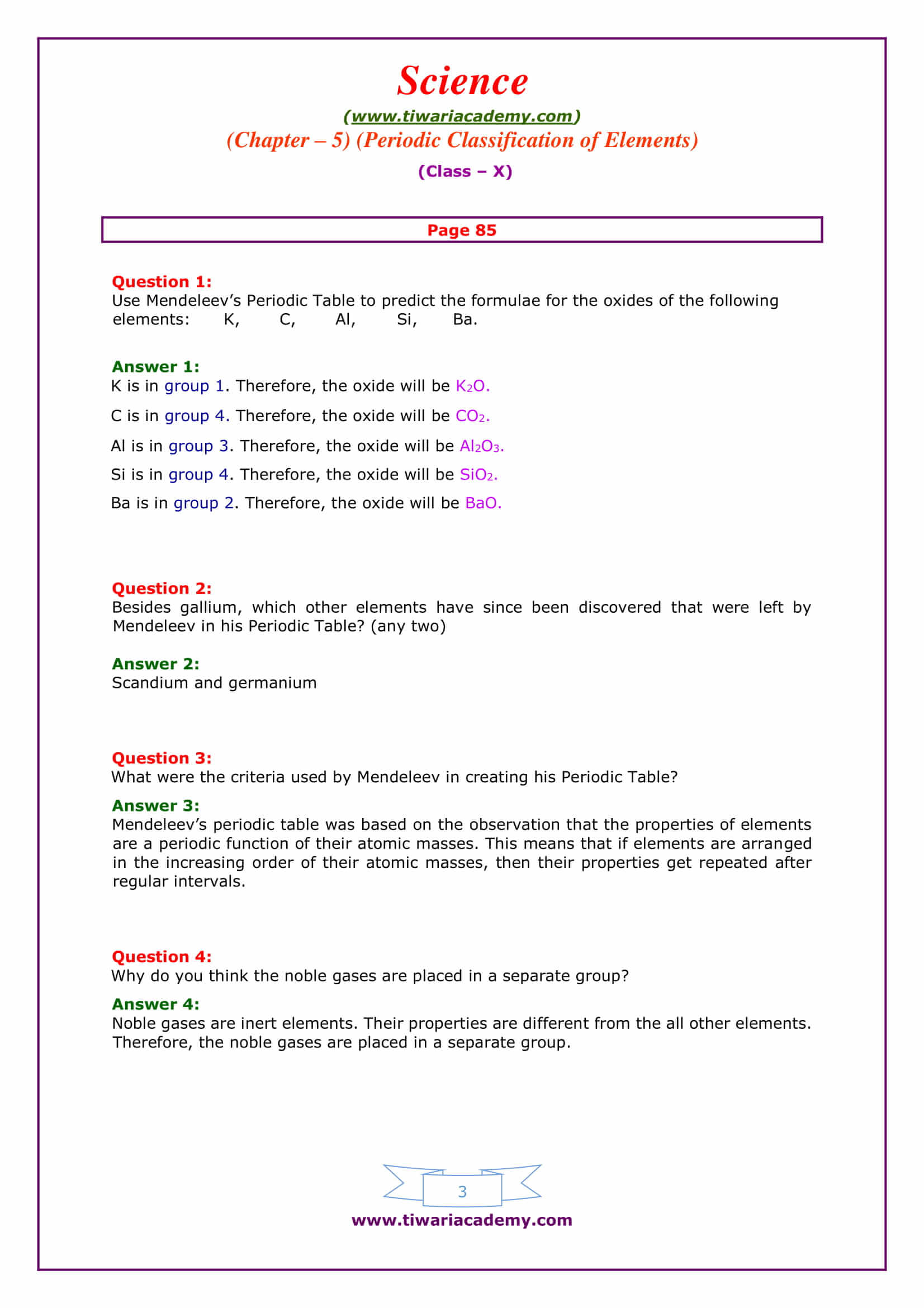 Ncert Solutions For Class 10 Science Chapter 5 Periodic Classification Of Elements Learn Cbse